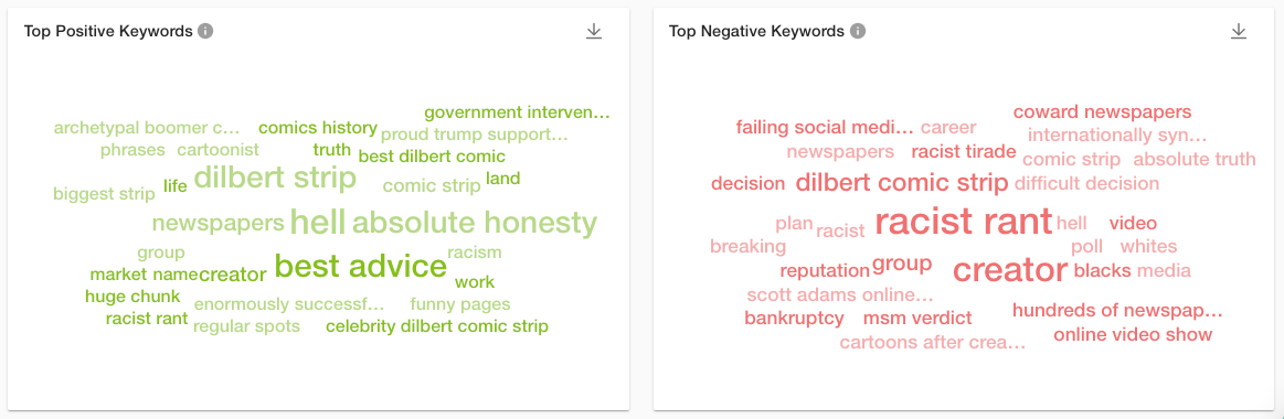 85,000 Twitter users posted about the Scott Adams story, reaching 330 million Twitter users and generating 1.8 billion impressions. Those are powerful numbers that will trip social media algorithms to give those topics more visibility in social feeds.
