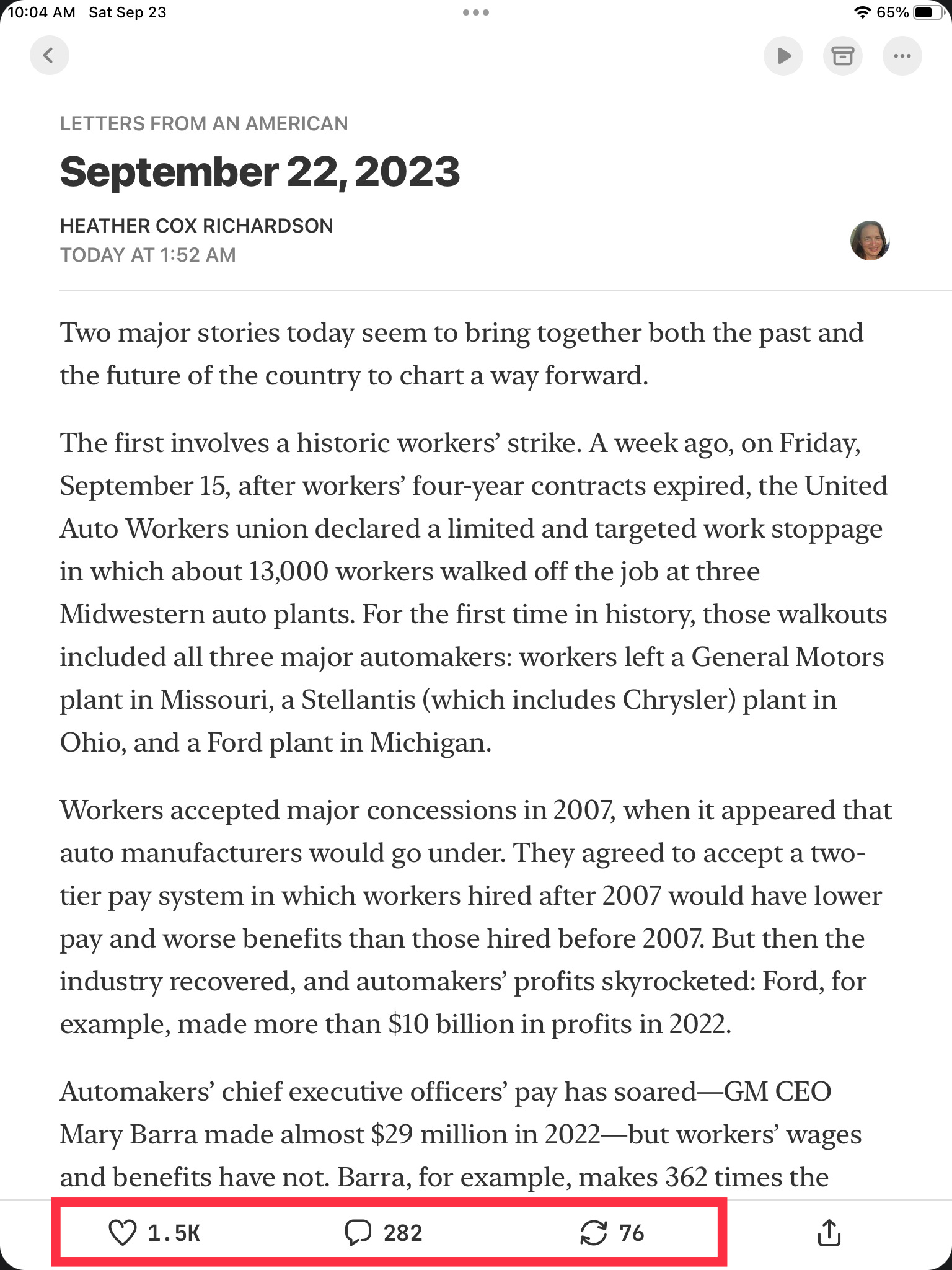 I see this all the time with newsletters and there’s no need for it because subscribers’ inboxes already tell you the date an individual edition was sent. Here’s how Richardson’s newsletter looks in substack: